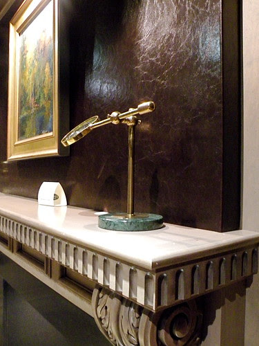 Moving onto some other spaces, this little library room features a leather wall - which is just fabulous!